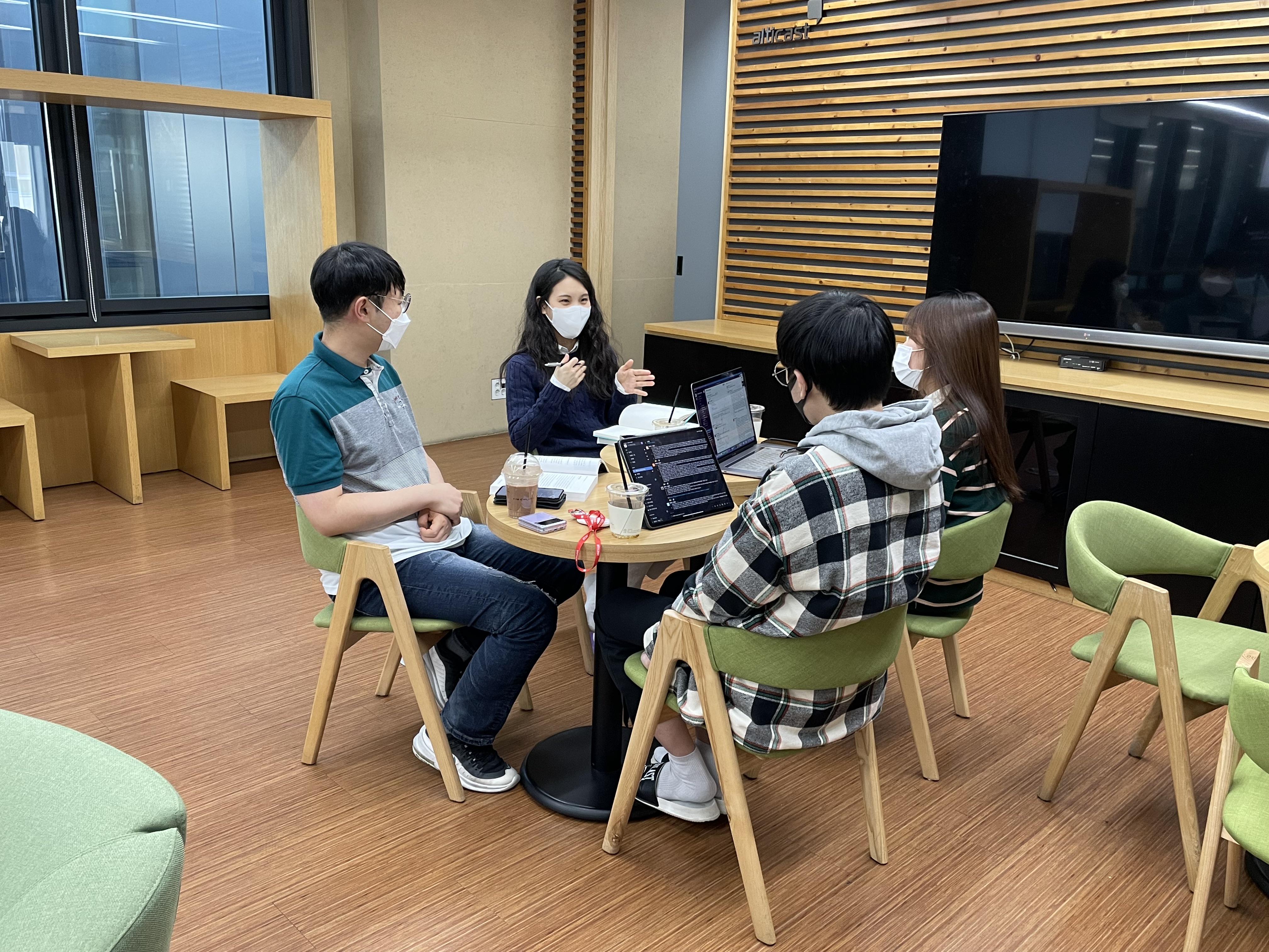 이렇게 매주 1시간 이상씩 팀원들과 얼굴을 마주보고 대화하는 시간이 저에겐 매우 유익했습니다. 각자 바라보는 관점과 선호도에 대해 더 잘 이해할 수 있었고 서로 유대감을 느낄 수 있었습니다. 팀 내에서도 특별한 활동을 공유하는 사이라는 느낌에 인턴 활동에서 활기를 불어넣어 주었습니다. 때론 맛있는 디저트를 함께 나눠먹으며 즐겁게 스터디 토론을 했던 추억이 좋게 남았습니다. 독학했을때보다 몇 배의 좋은 결과를 얻을 수 있었다는 강한 확신이 듭니다. 스터디를 진행했던 팀원들 모두에게 감사의 인사를 드립니다!