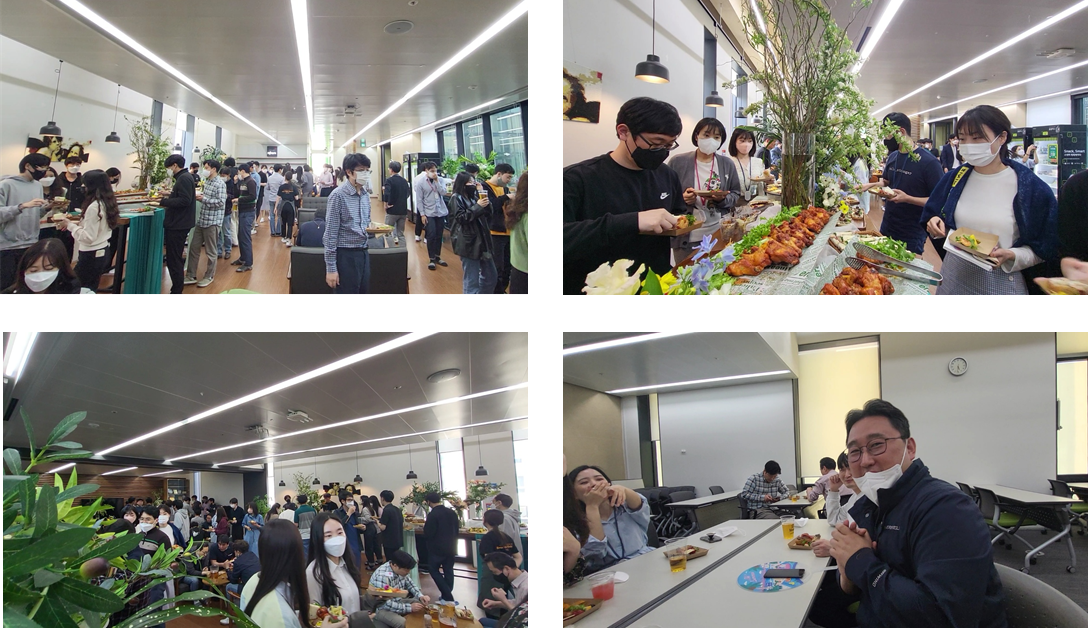구성원들이 자유롭게 커뮤니케이션 하고 친목을 다지는 모습