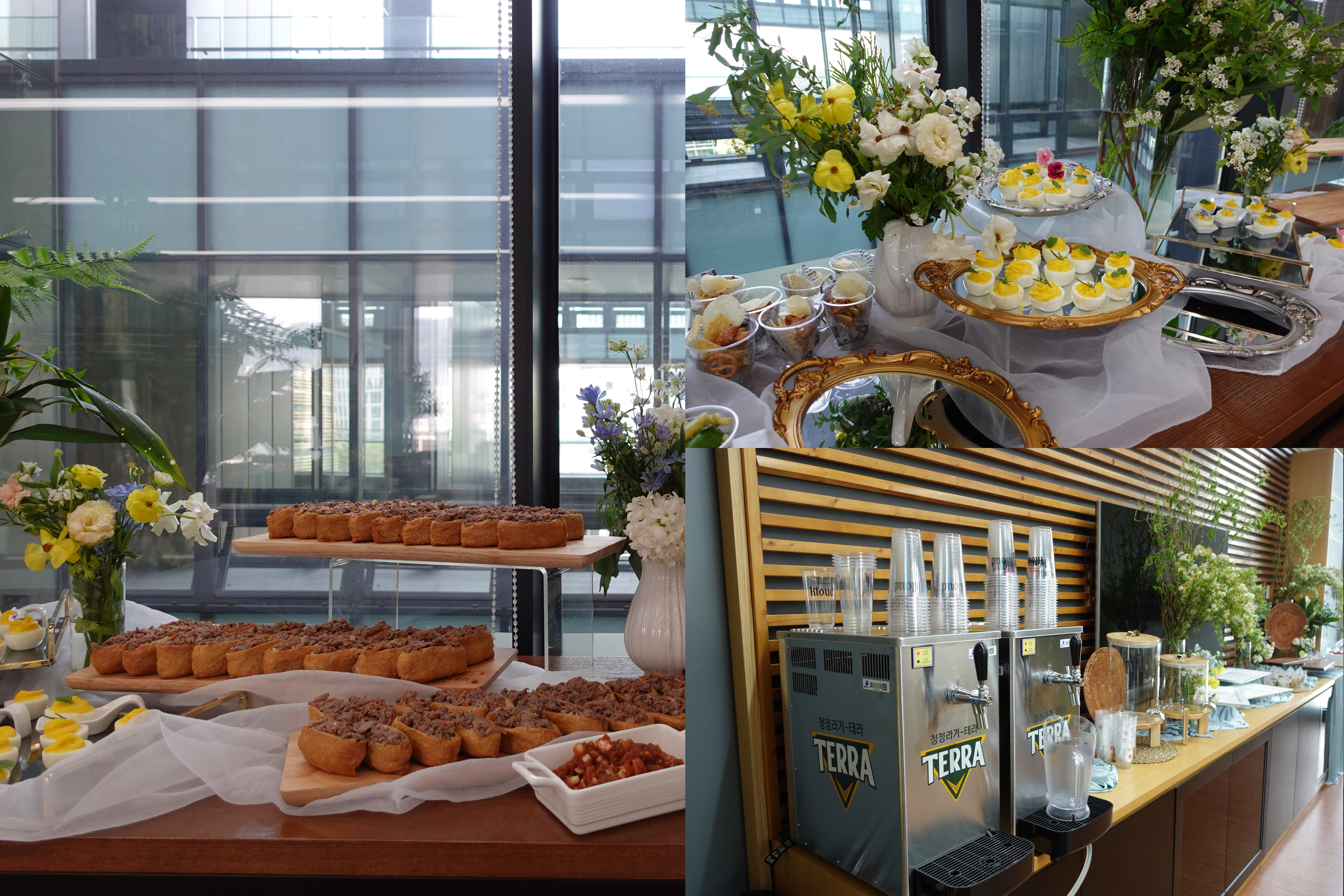 모두가 즐길 수 있도록 맥주와 어울릴만한 음식을 셋팅했어요.